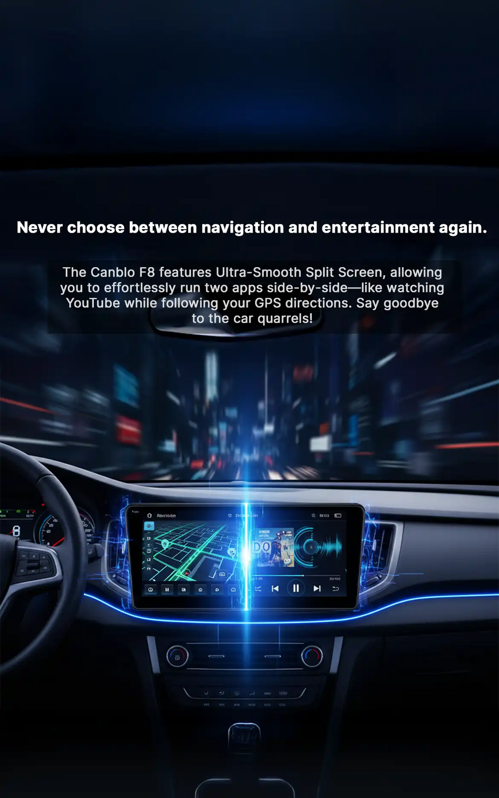 Upgrade your car with the CANBLO F8 Ultra, a feature-packed Android stereo designed for drivers who want clarity, control, and convenience. In-built DSP and high-performance processor makes your ride a symphony. With its built-in 360° bird’s-eye camera system, you see every angle around your vehicle making parking, tight manoeuvres, and city driving effortless and safer.